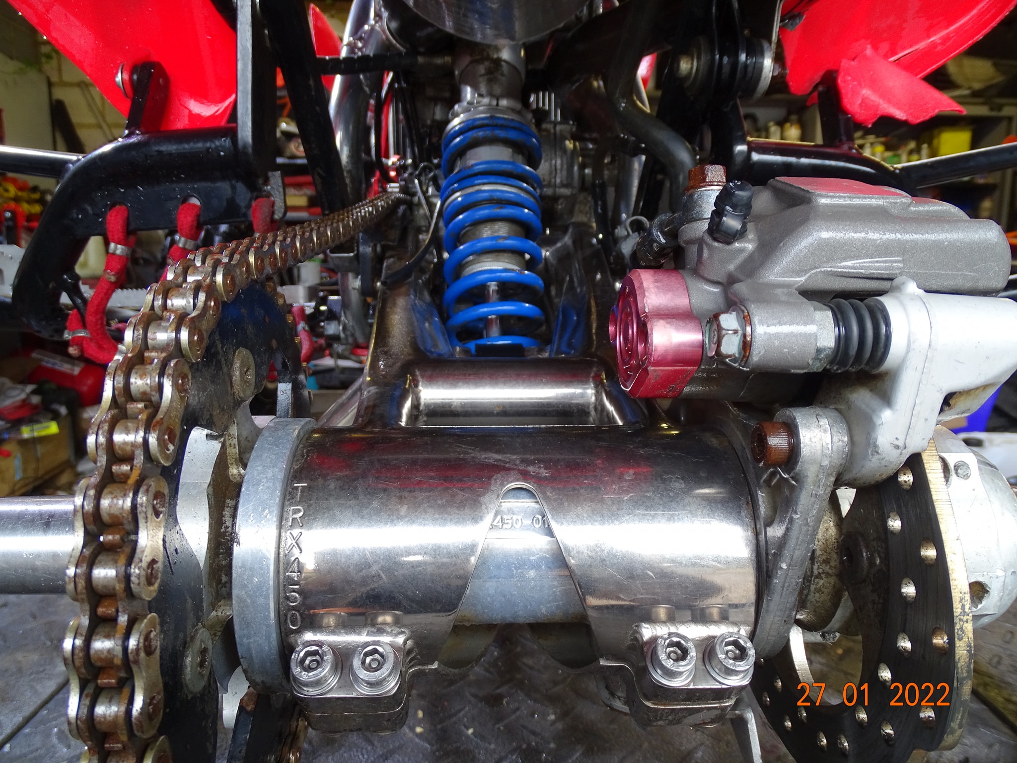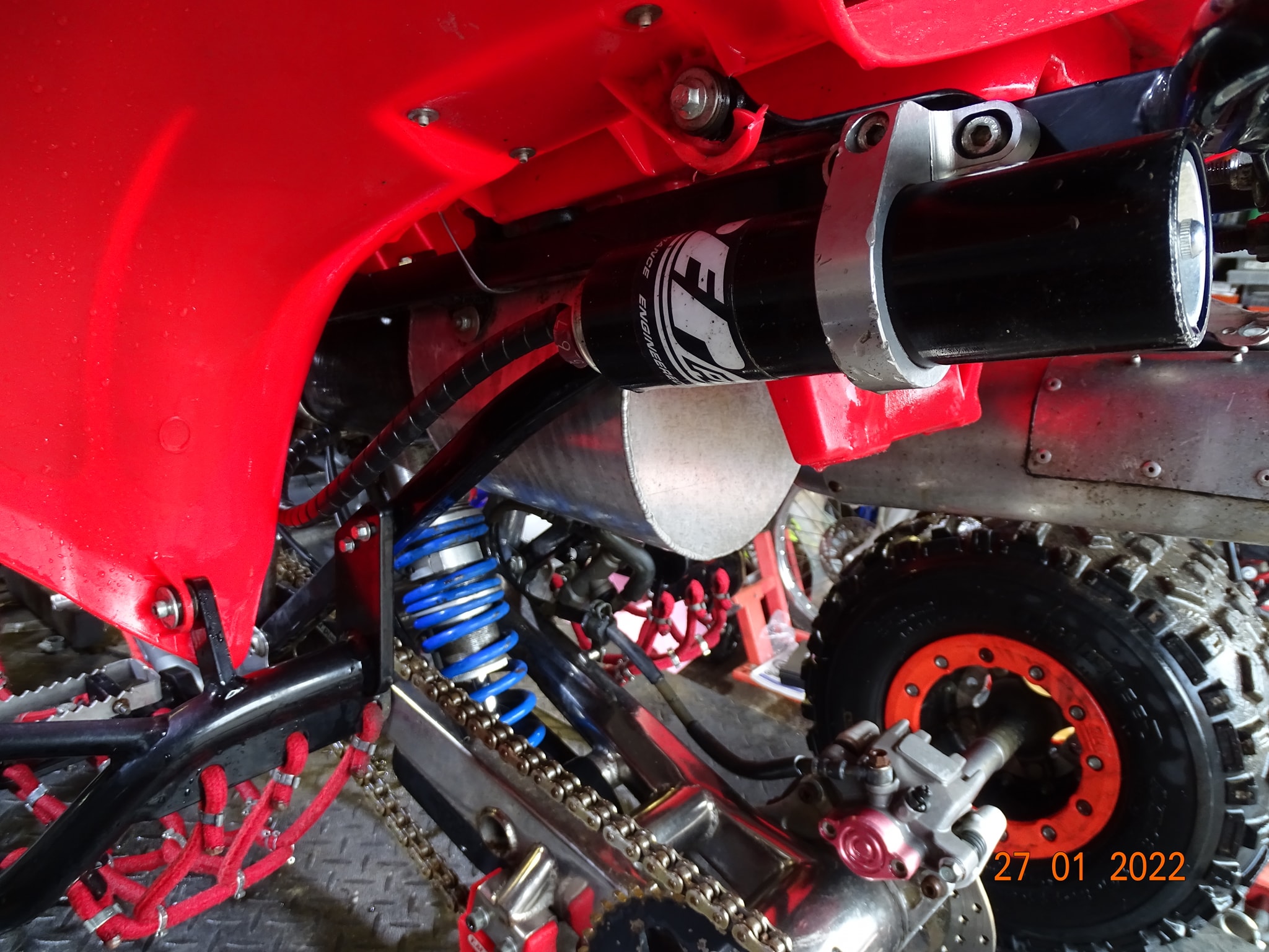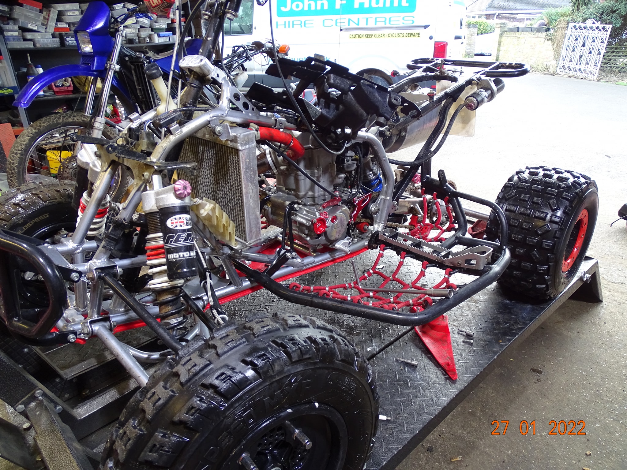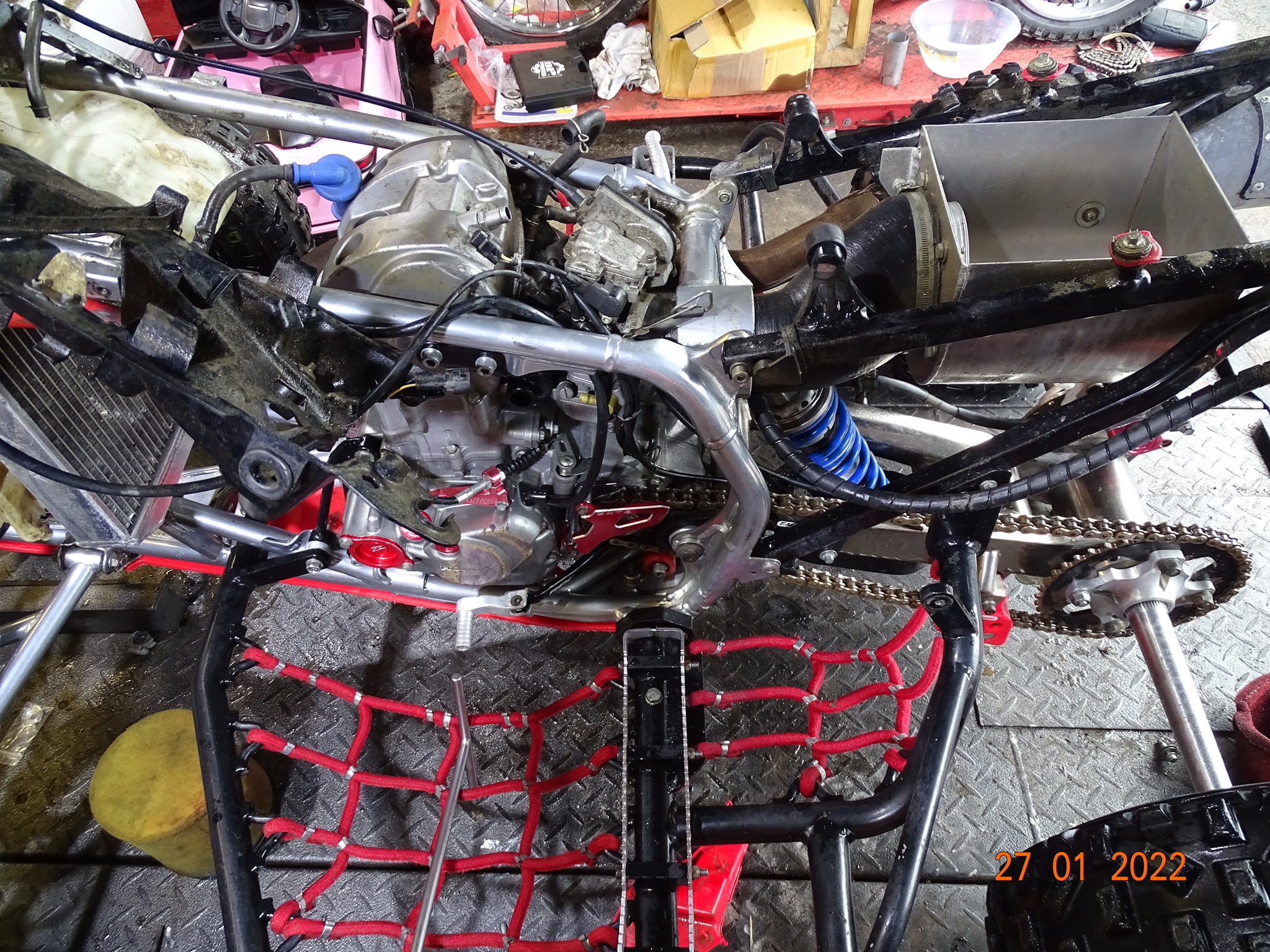 Honda TRX450 being prepped and serviced prior to the new race season.