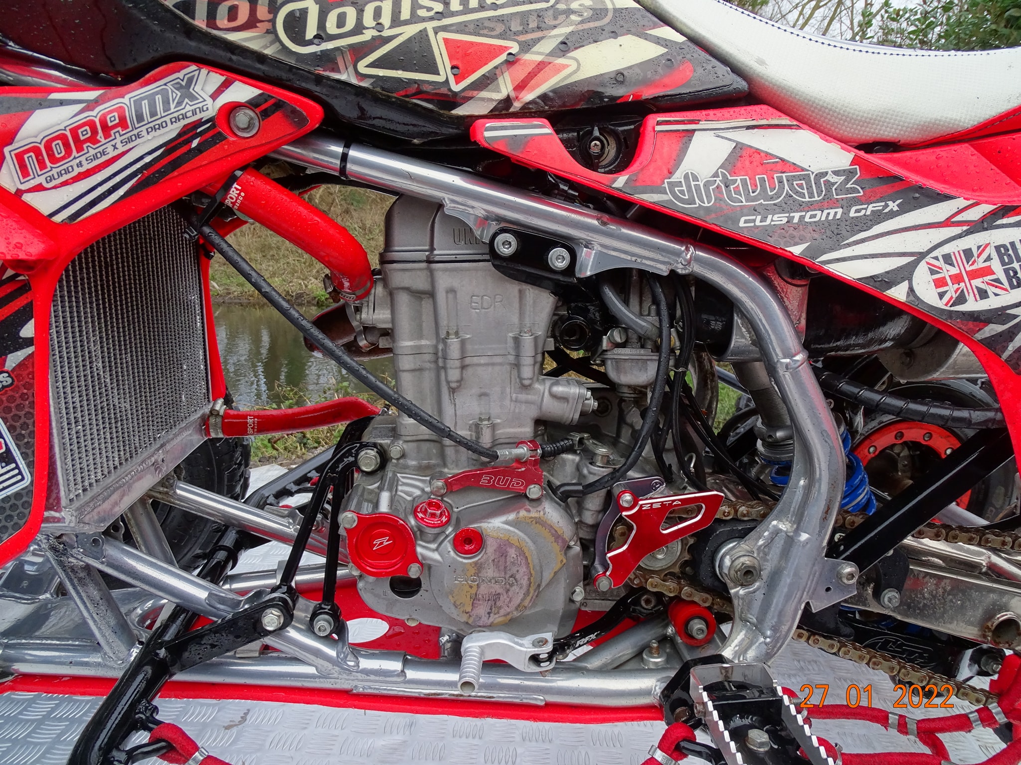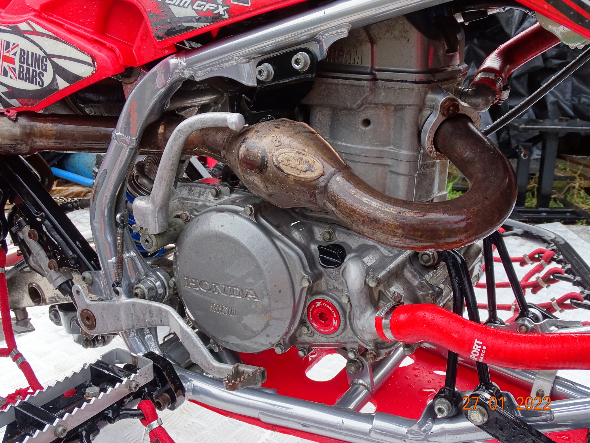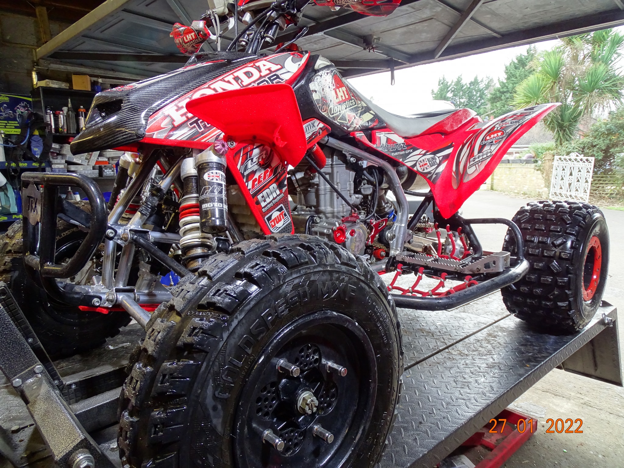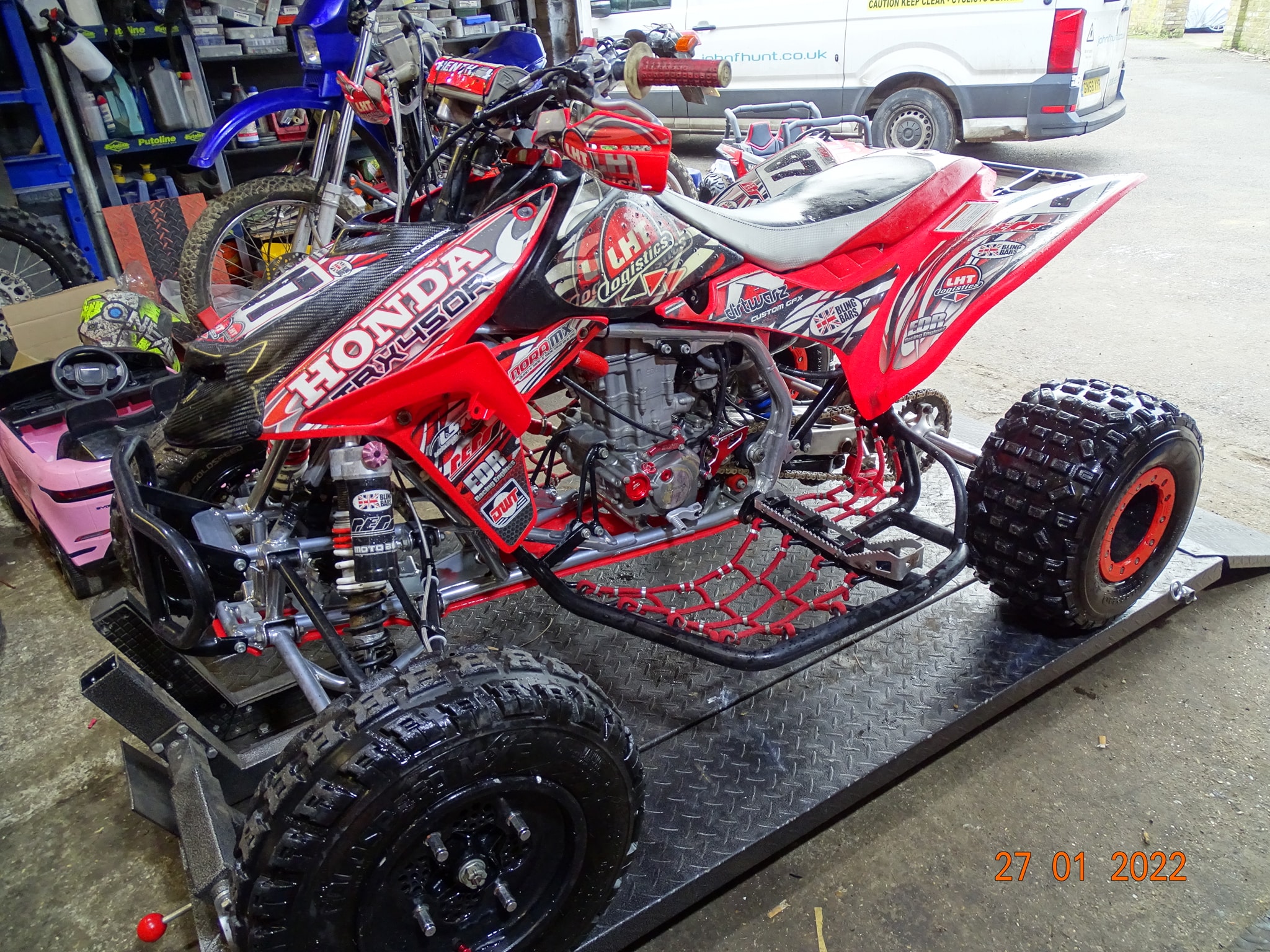 Honda TRX450 being prepped and serviced prior to the new race season.